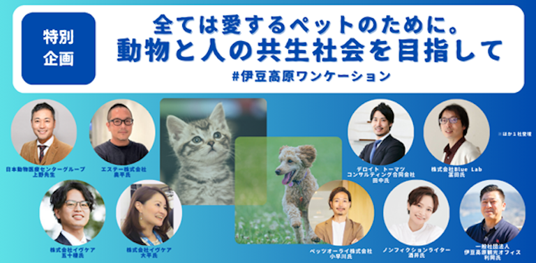 3月8日に伊豆高原で開催された#伊豆高原ワンケーションの特別企画「全ては愛するペットのために。動物と人の共生社会を目指して」に株式会社Blue Labの冨田直宏がパネリストとして登壇いたしました。