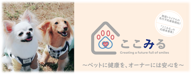 ※ここみるとは、「ペットの健康寿命延伸とペットオーナーの幸福度向上」を目的に、「ワンちゃんに健康を、オーナーには安心を」のコンセプトの下、ペットオーナーさまに寄り添うサービスです。